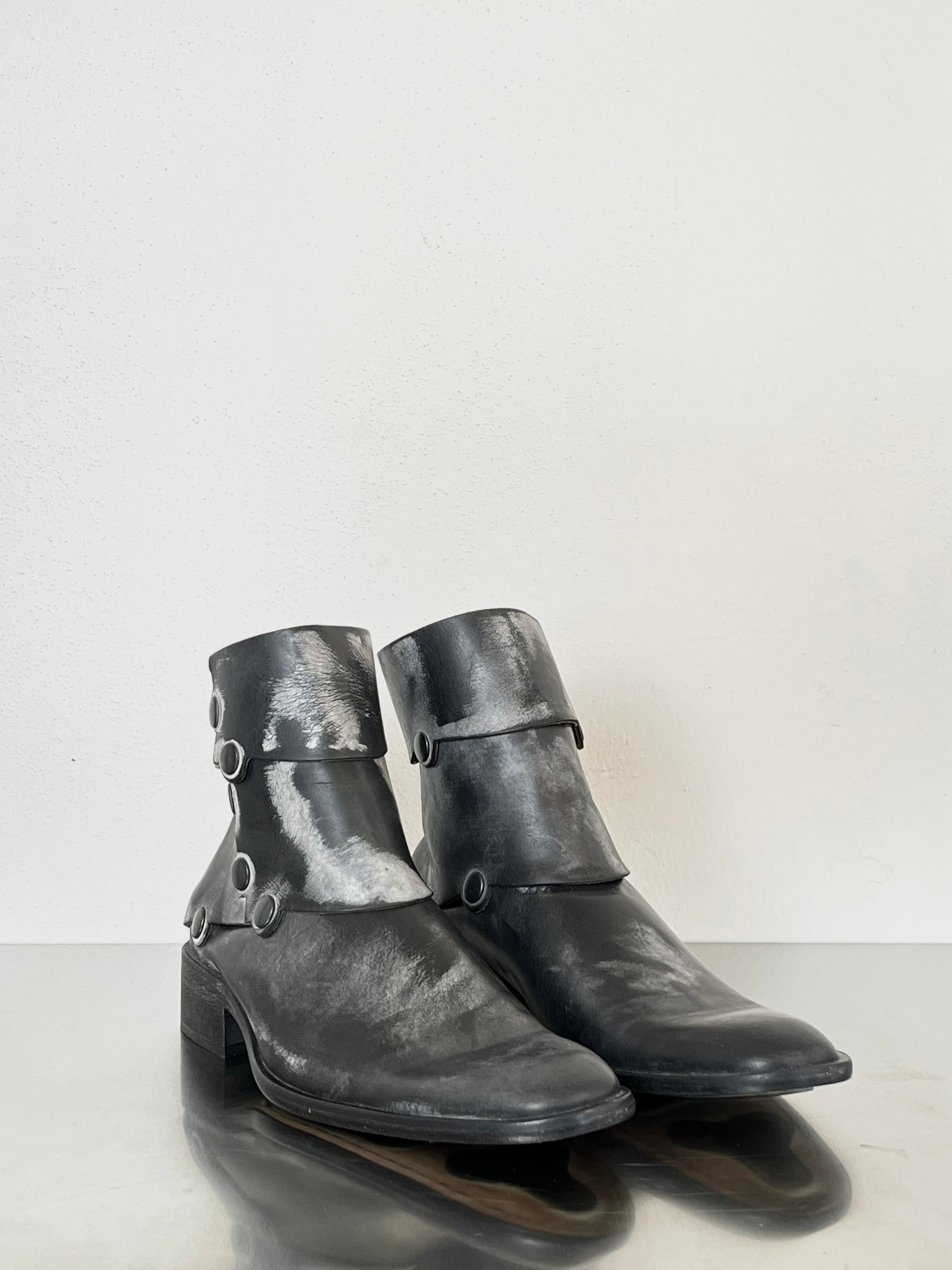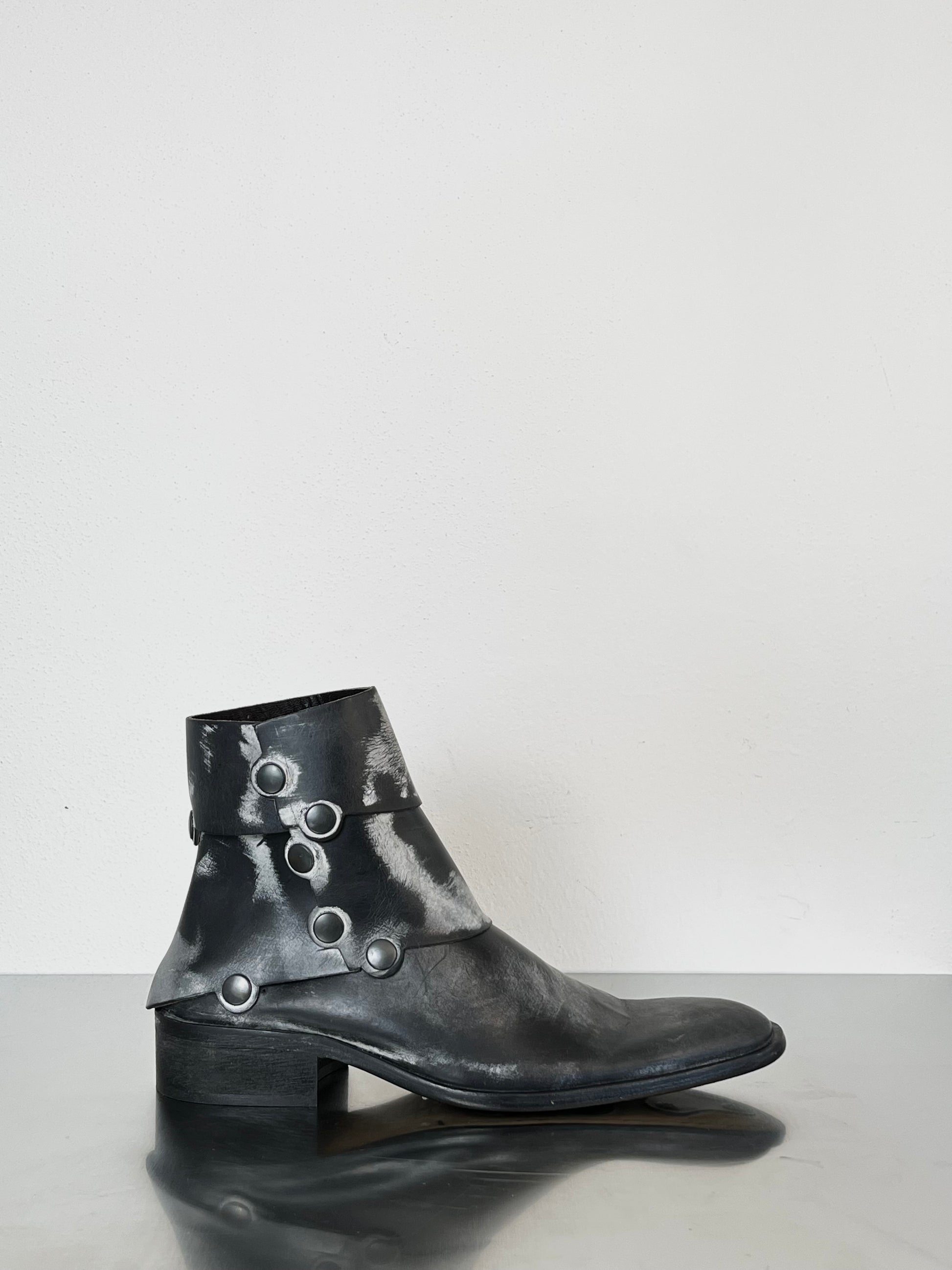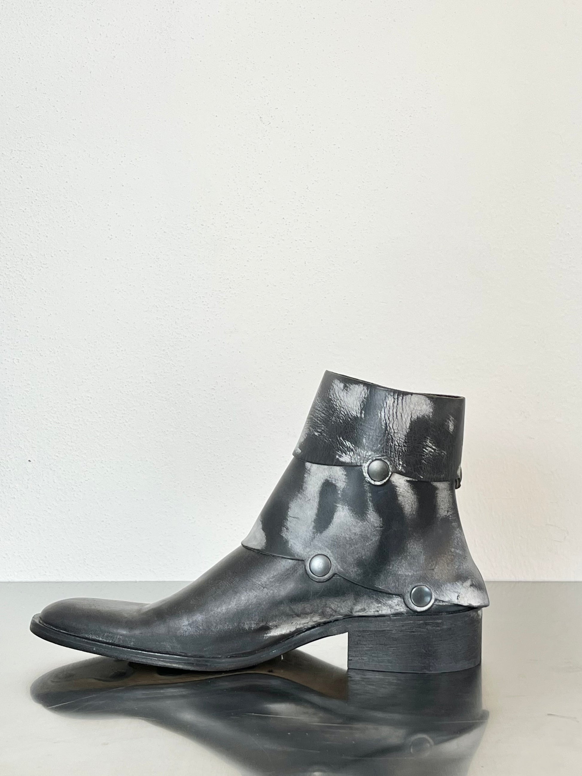 Crafted in Italy from brushed calf leather with a lived-in finish, this modular boot transforms through a system of snap buttons.