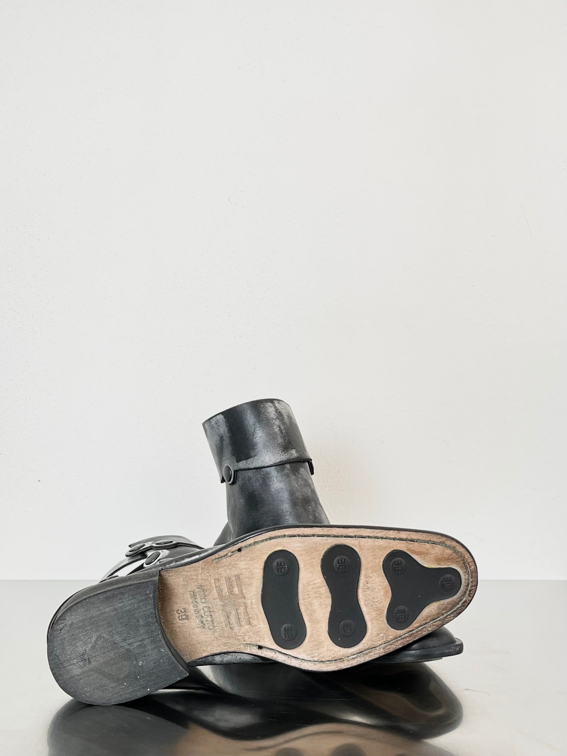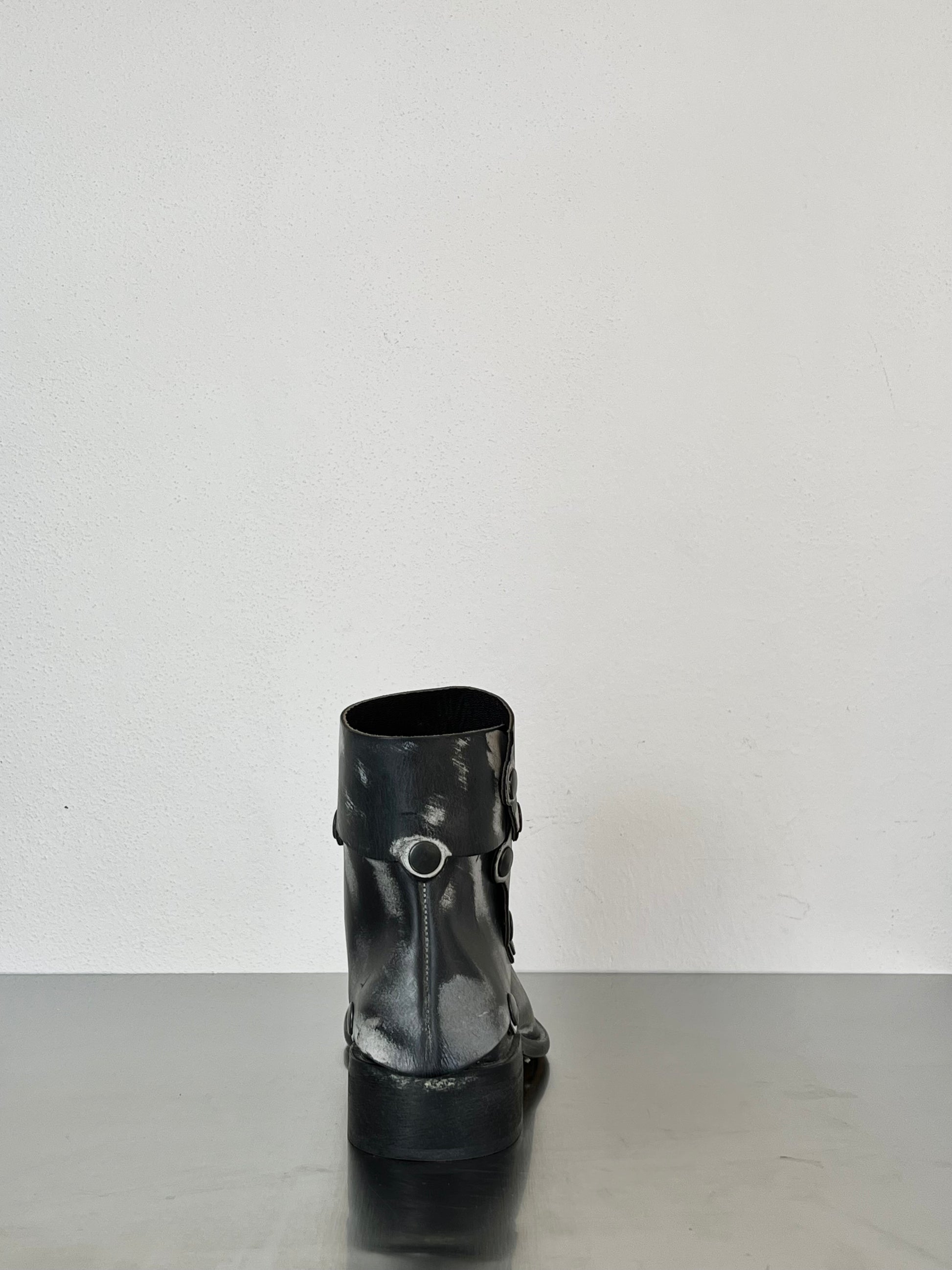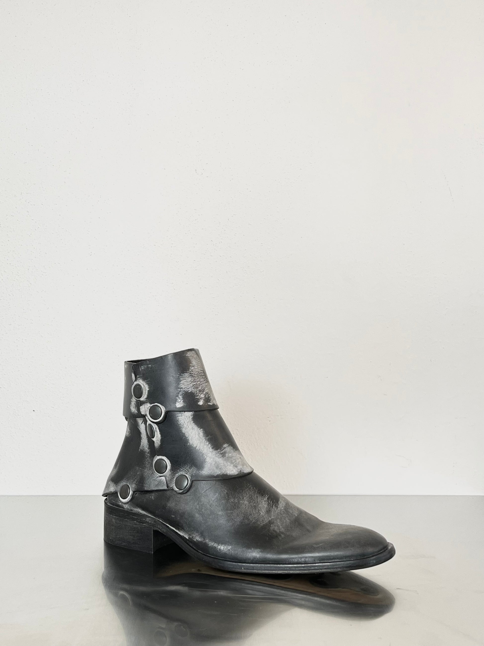 Crafted in Italy from brushed calf leather with a lived-in finish, this modular boot transforms through a system of snap buttons.