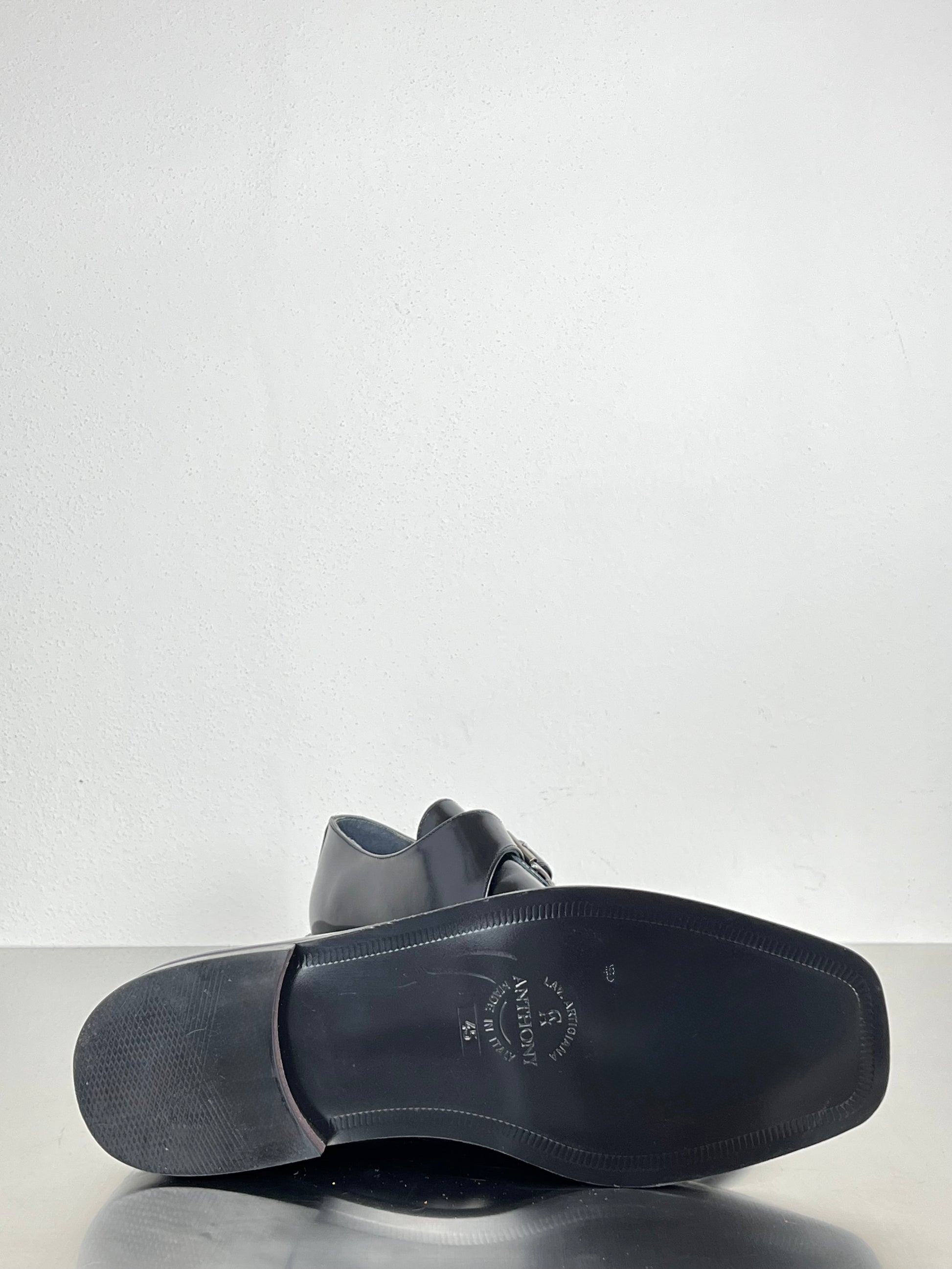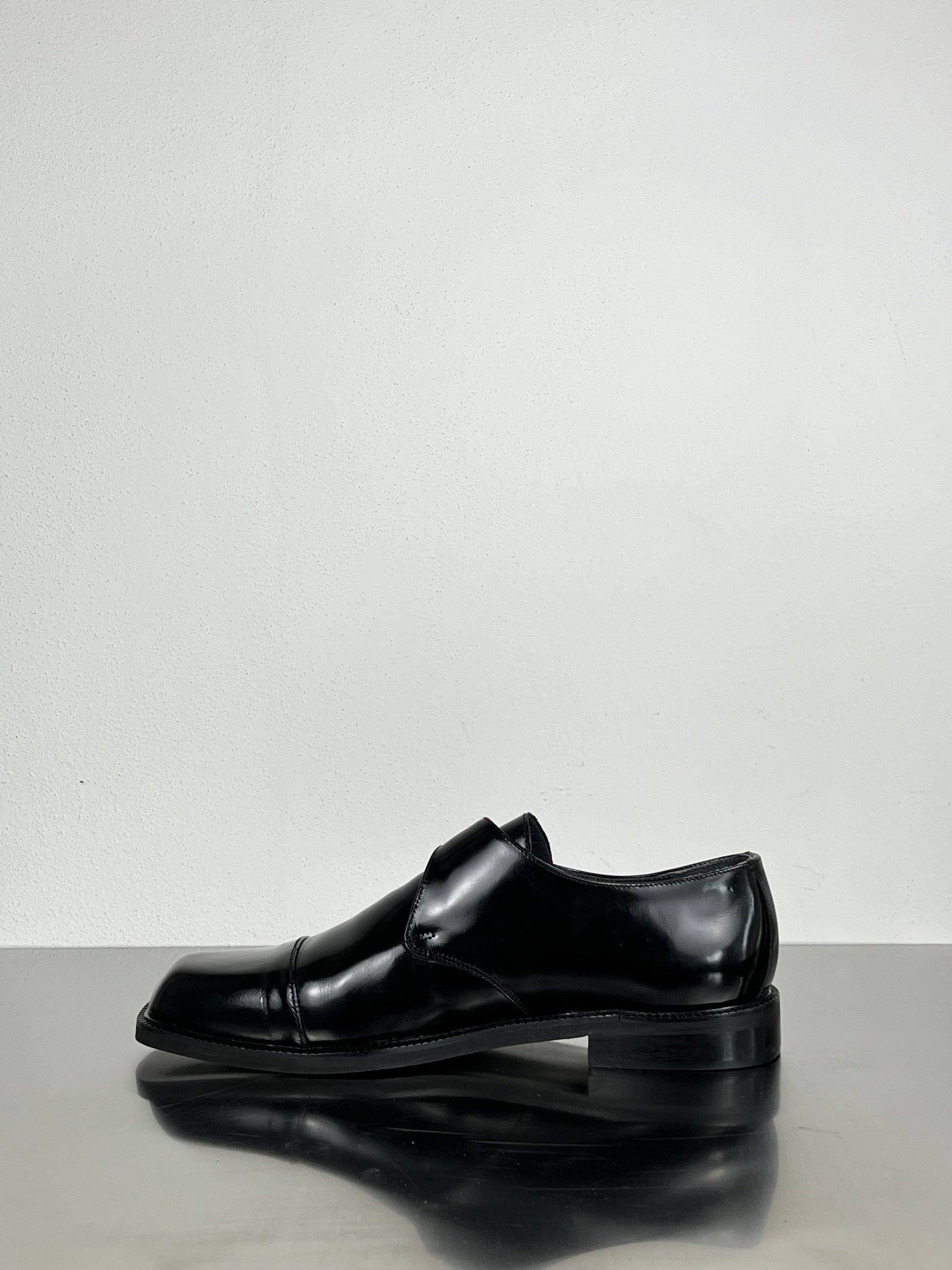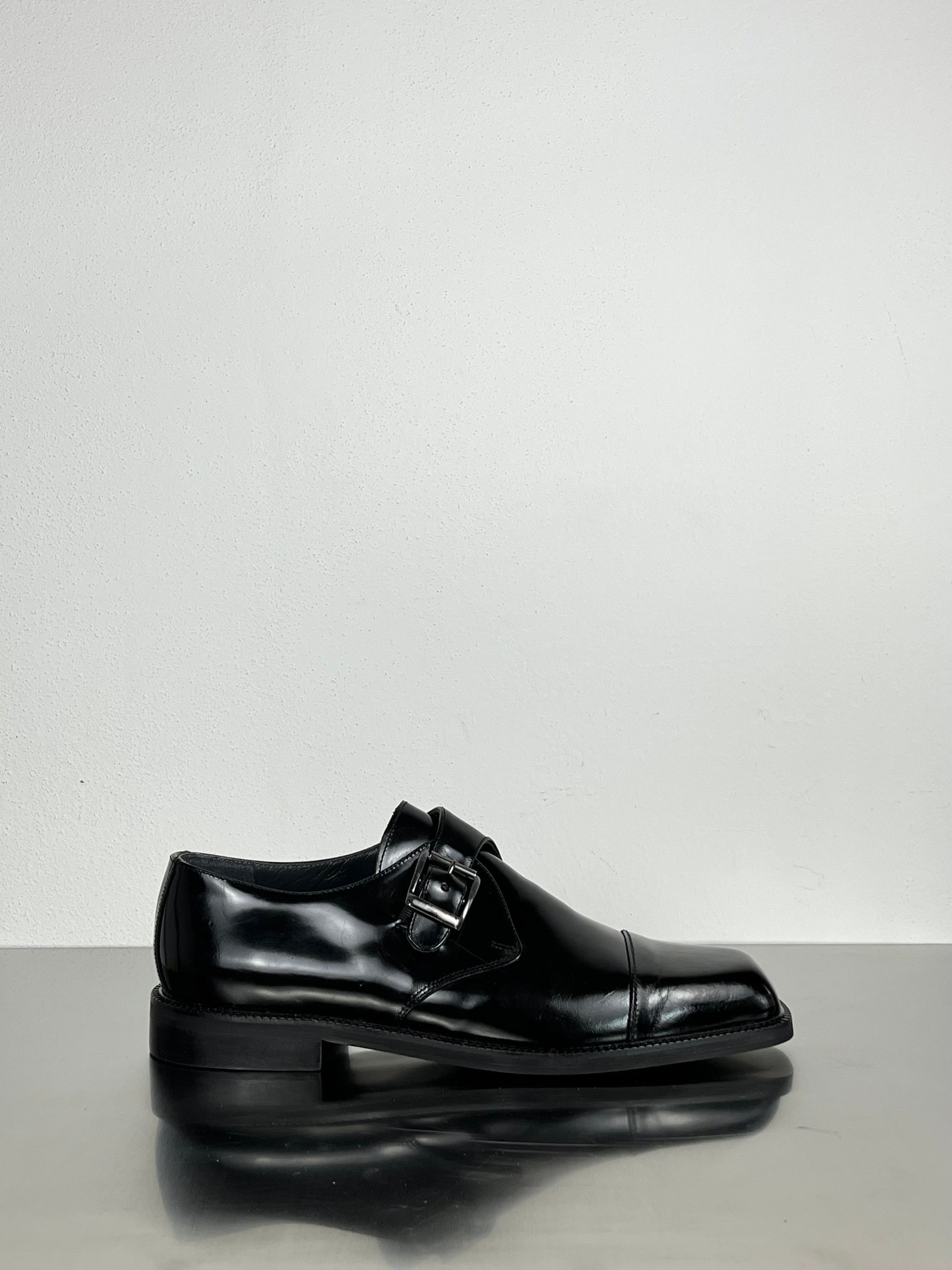 Made in Italy from smooth calf leather, hand-polished to a mirror finish. The single buckle closure and squared toe create a precise, balanced geometry — formal yet effortless. Built on a solid leather sole for comfort and endurance, this shoe embodies quiet confidence and the discipline of classic design.